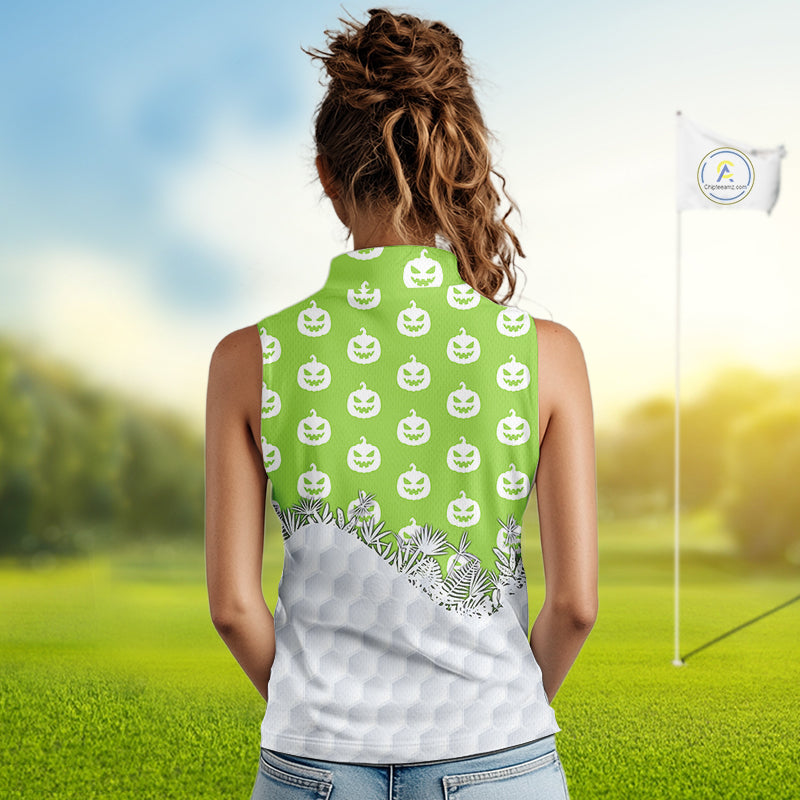 Personalized green pumpkin Halloween pattern Women sleeveless golf polo shirts best ladies golf wears NQS10316