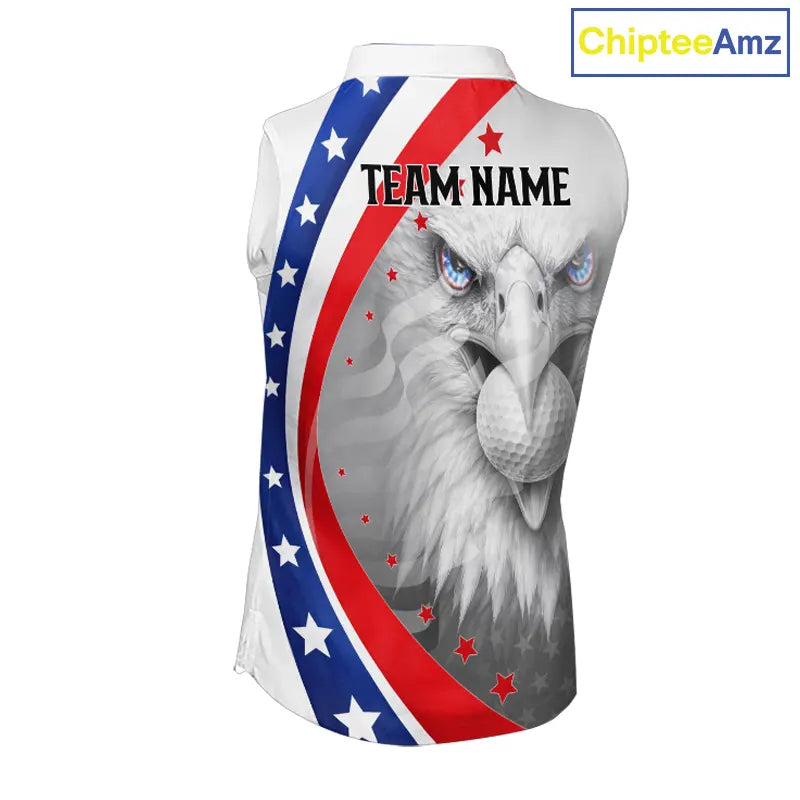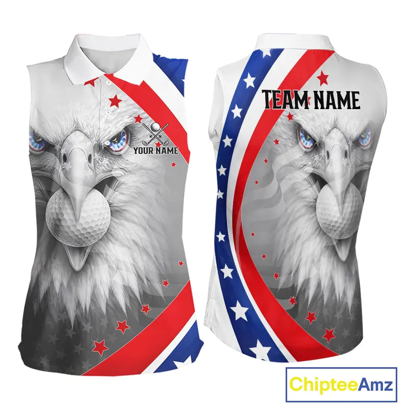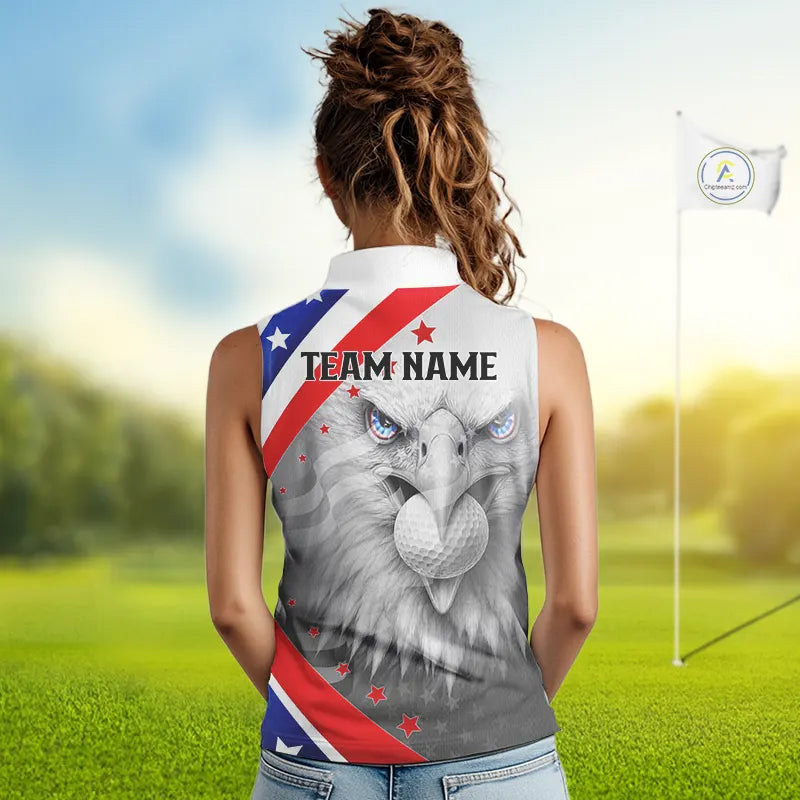 Red, White and Blue US Flag Eagle Sleeveless Golf Shirt For Women Custom Patriotic ladies golf shirts NQS11631
