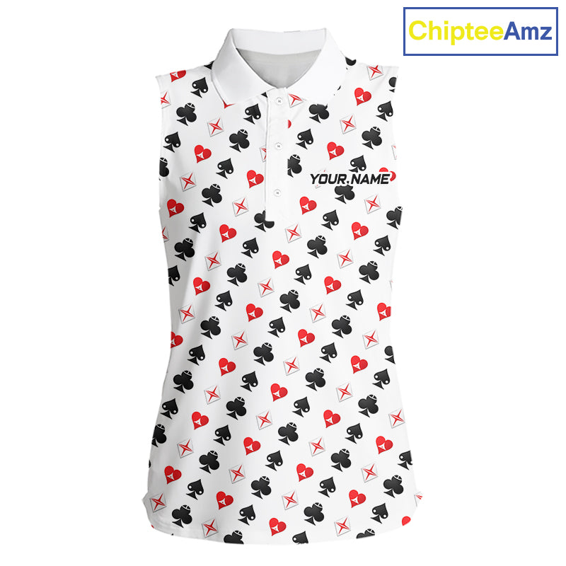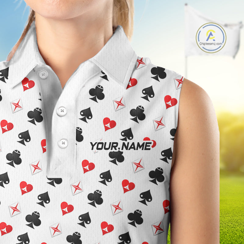 Poker Golf Sleeveless Polo Shirt For Womens Personalized Name Funny Golf Team Attire Golfer Gift For Ladies NYN2851