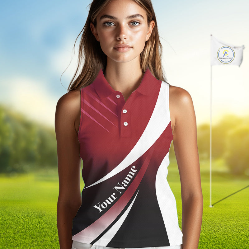 Women Sleeveless Polo Shirt custom name red and white golf shirt, tournament golf tops for ladies NQS10259