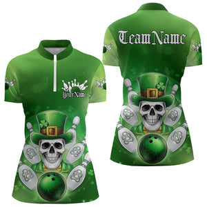 Custom Celtic St Patricks Bowling Womens Quarter-Zip Shirts, Shamprock Skull Bowling Shirt IPHW8589