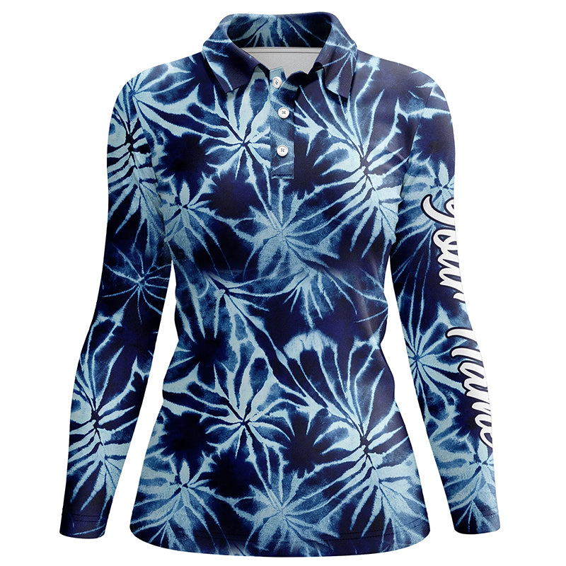 Womens golf polo shirts with blue tie dye background custom name golf shirt, golfing gift NQS5919