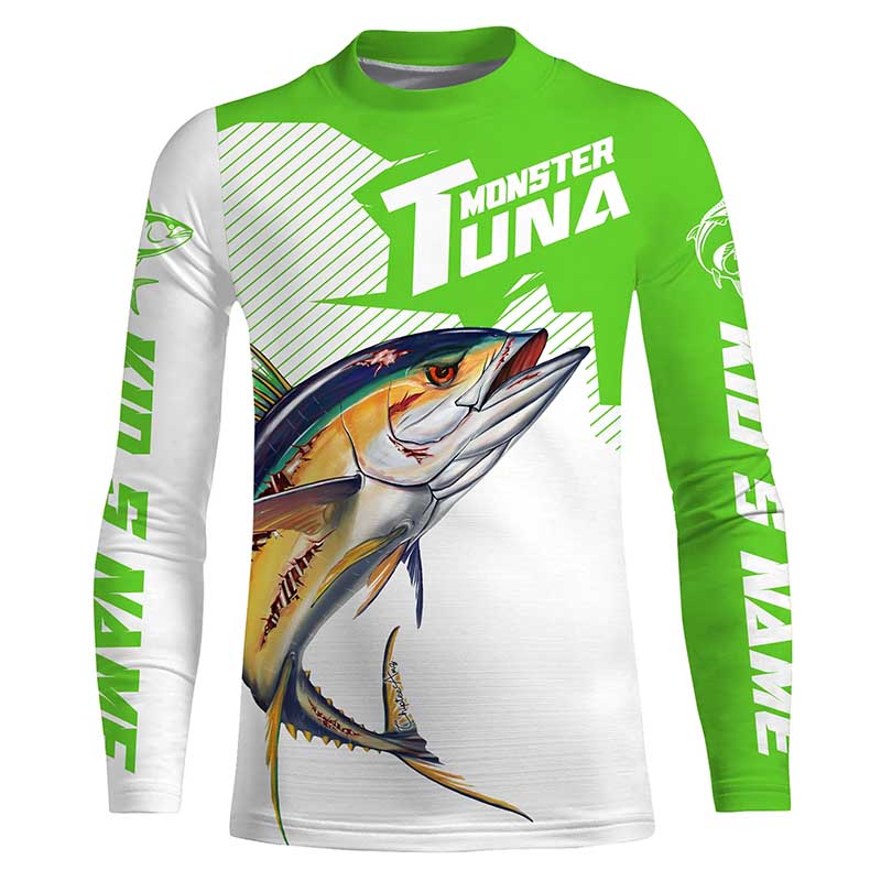 Monster Tuna Fishing jerseys, Yellowfin Tuna fish skull Custom Long sleeve Fishing Shirts | green IPHW3533