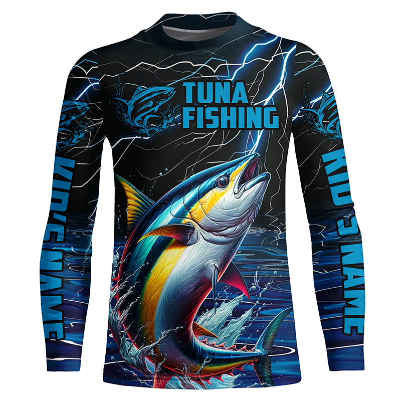 Blue Lightning Custom Yellowfin Tuna Long Sleeve Saltwater Fishing Shirts, Tuna Fishing Jerseys IPHW5997