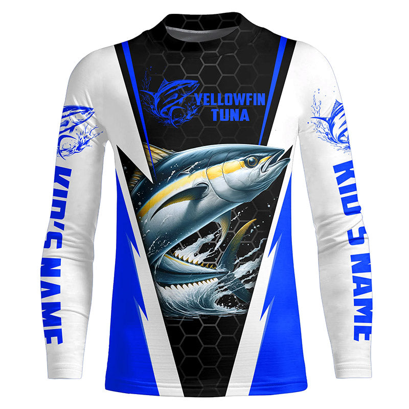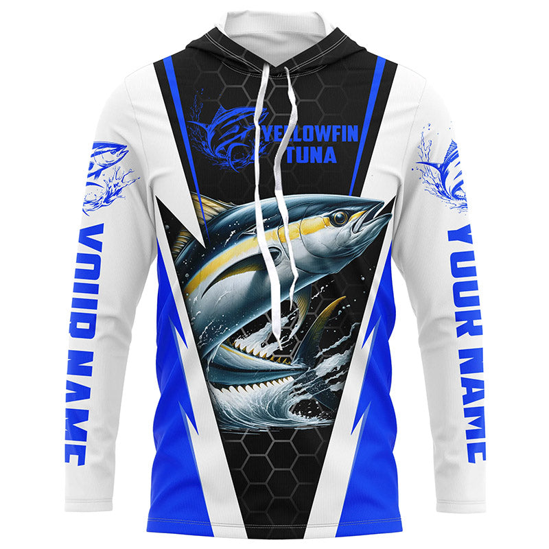 Custom Yellowfin Tuna Fishing Jerseys, Tuna Long Sleeve Performance Fishing League Shirts | Blue IPHW6400