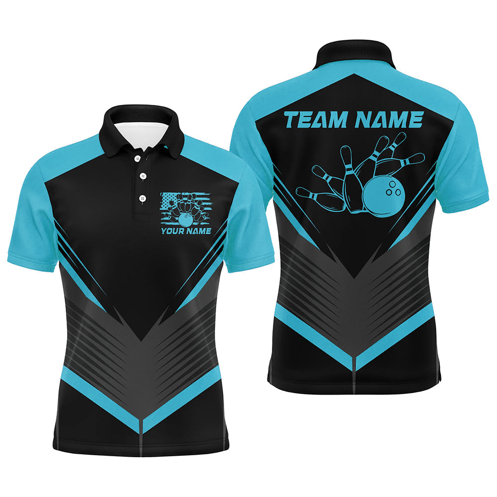 Black And Blue Custom Vintage Bowling Shirts For Men, Classic Bowling League Shirt For Team IPHW7705