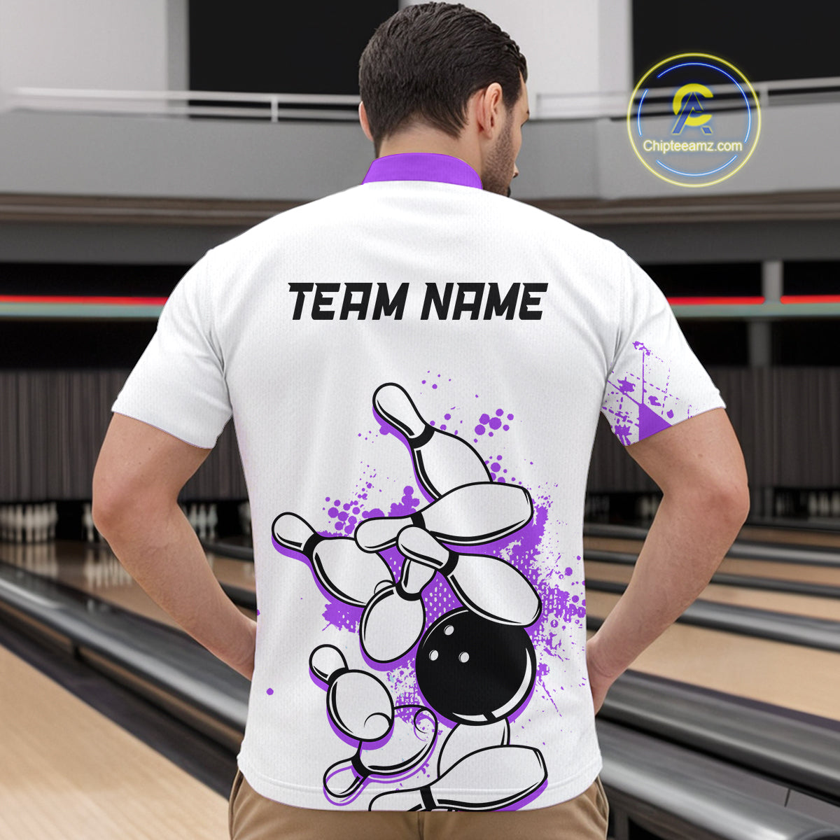 Purple Vintage Bowling Custom Men Bowling Shirt Polo & Quarter-Zip Bowling Team Jerseys HNT68