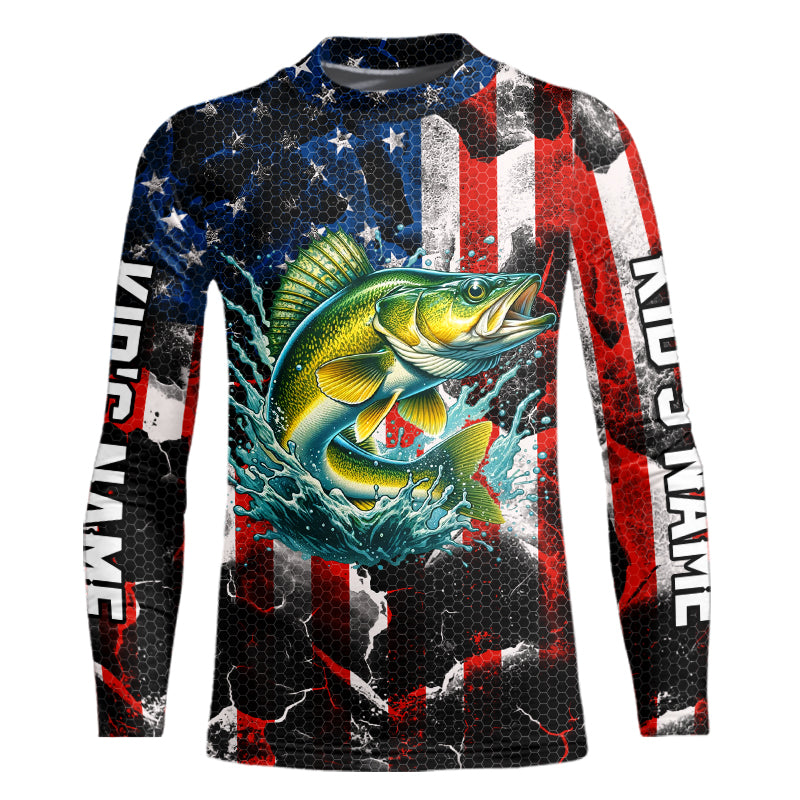 Walleye fishing black American flag Custom UV protection performance long sleeve fishing jerseys NQS9277