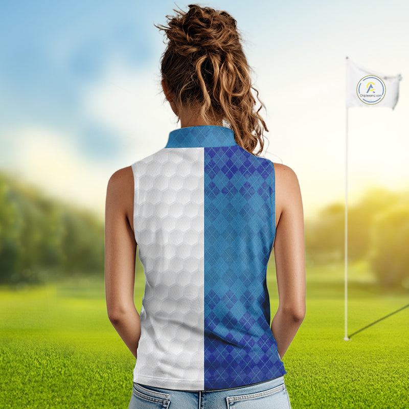Blue white Womens Sleeveless polo shirt custom I was one under today one under a tree, a bush & water NQS10090