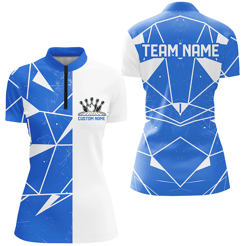 Blue Geometric Custom Ladies Bowling Team Shirts, Bowling Jerseys For Bowlers IPHW6266
