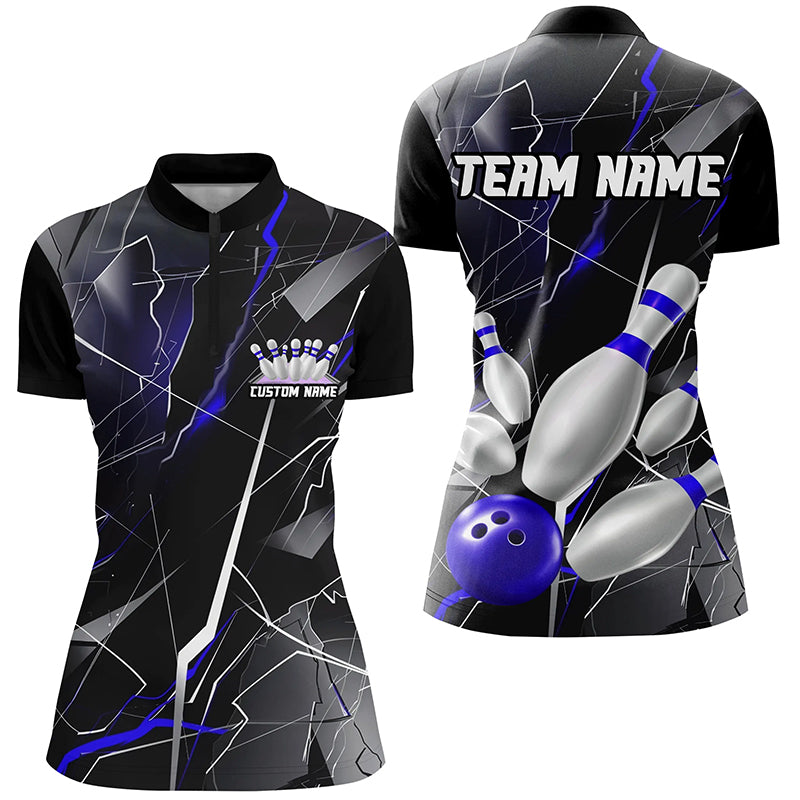 Blue Thunder Lightning Custom Bowling Team Shirts For Women, Strike Bowling Jerseys IPHW6467
