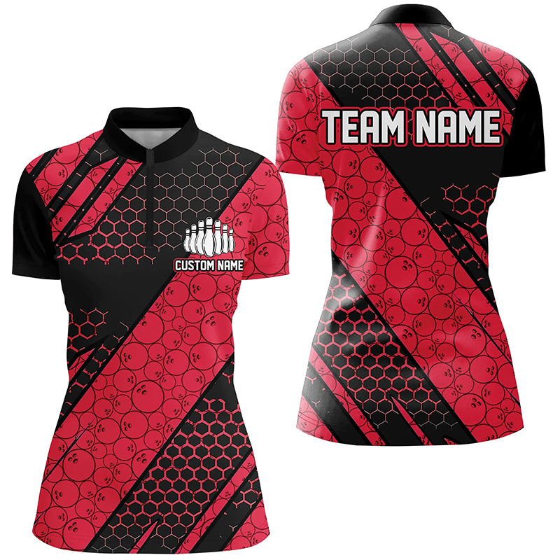 Bowling Ball Pattern Custom Bowling Team Jerseys, Bowlers Shirts For Women | Red IPHW6476