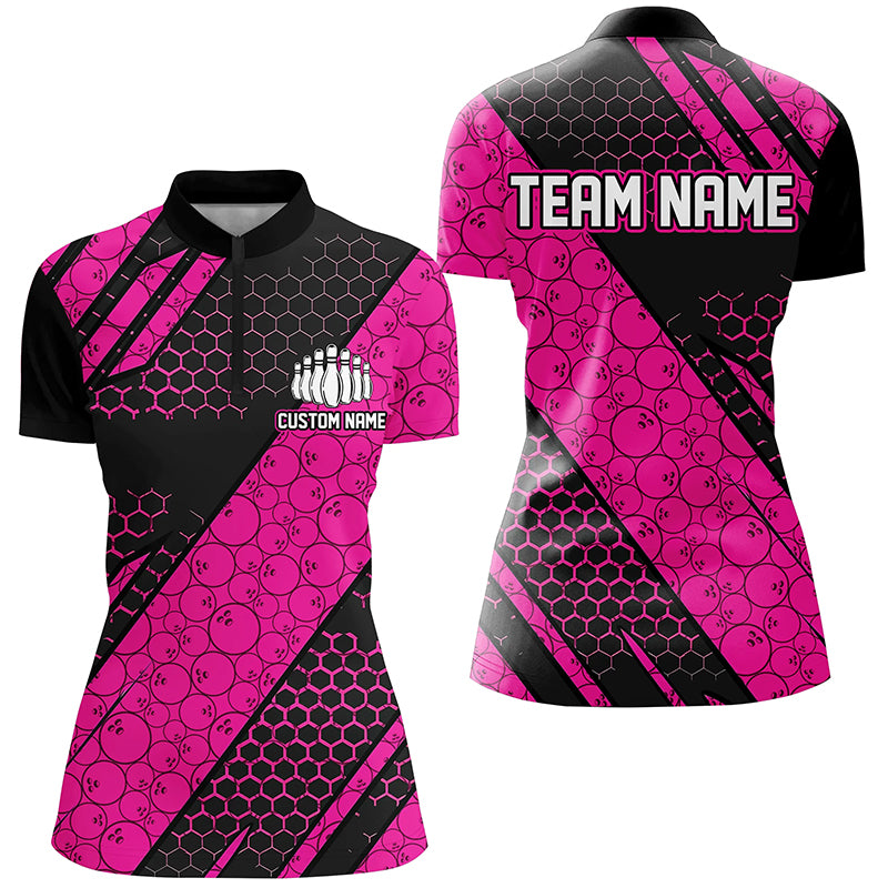 Bowling Ball Pattern Custom Bowling Team Jerseys, Bowlers Shirts For Women | Pink IPHW6477