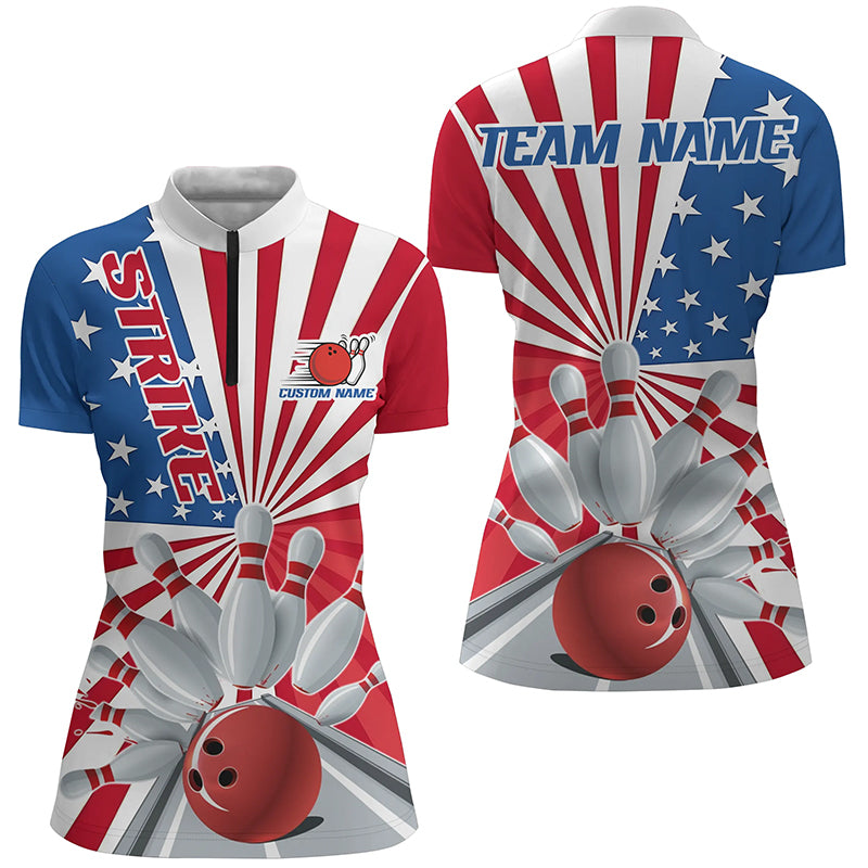 Custom Strike Bowling Shirts For Women, Patriotic Bowling Tournament Team Shirt IPHW6519
