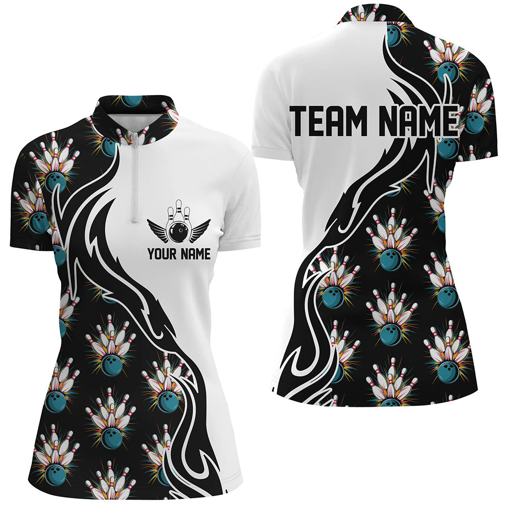 ✔️ Custom Women's Bowling Shirts Our uniquely designed bowling polo and quarter-zip shirts are ideal for proud female bowlers who want to make a bold statement. With a stylish form and distinctive design, these shirts set you apart from the rest, highlighting your passion and confidence in bowling. Add your personal touch to create a one-of-a-kind shirt that carries your unique imprint.