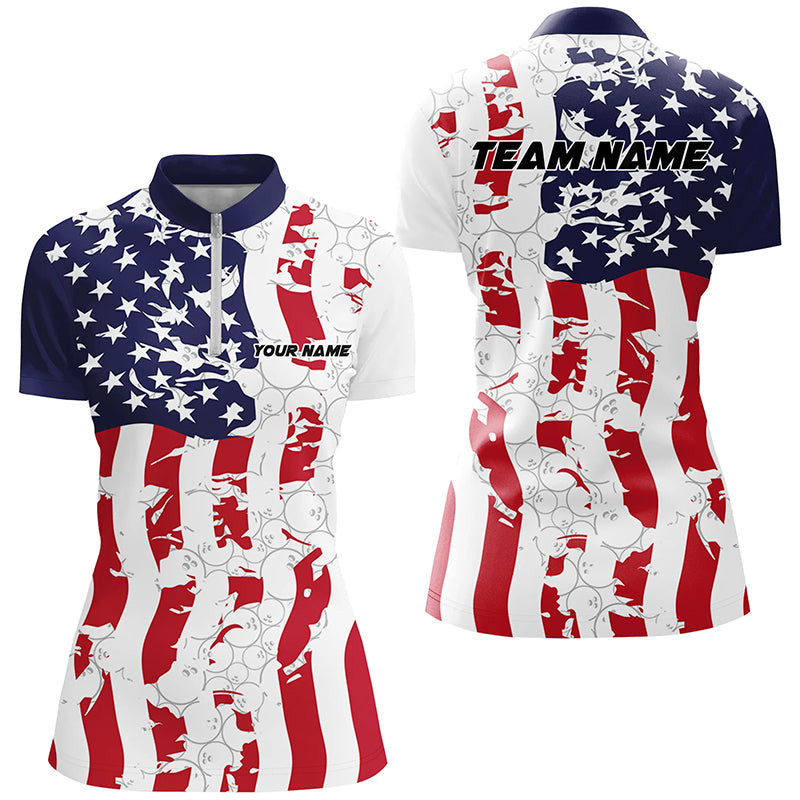 American Flag Custom Bowling Team Shirts For Women, Patriotic Bowling Team Jerseys IPHW6977