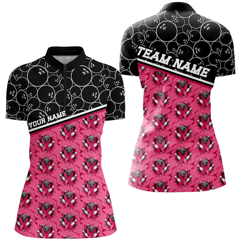 Pink Ribbons Bowling Pattern Custom Breast Cancer Awareness Bowling Shirts For Women IPHW7006
