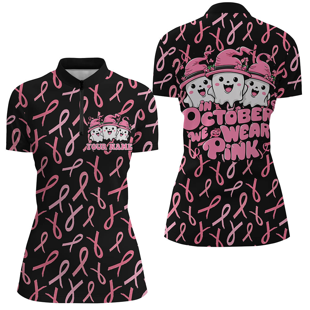 Custom Cute Funny Halloween Breast Cancer Polo Shirts For Women "In October We Wear Pink" IPHW7125