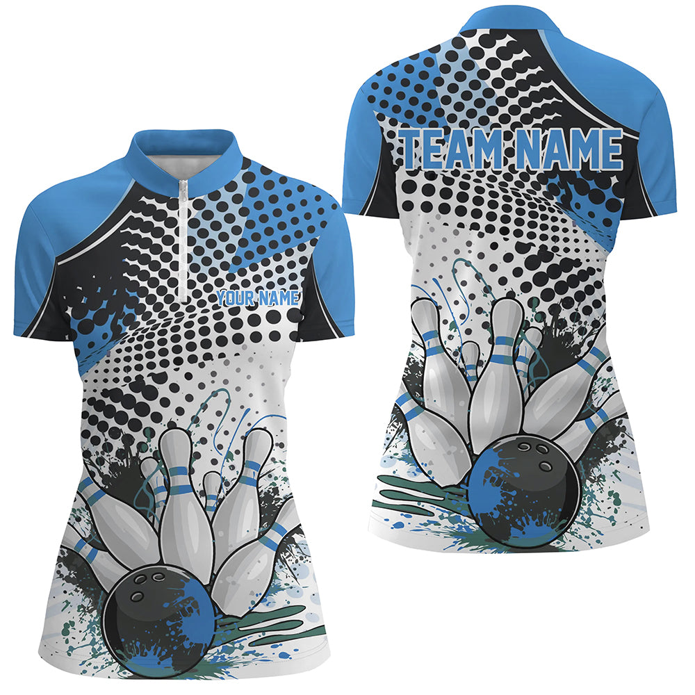 Personalized Bowling Shirts For Women, Custom Bowling League Shirts Blue Bowling Outfits IPHW7132