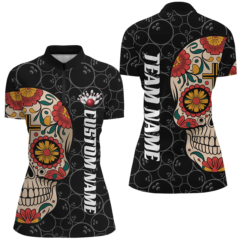 Custom Sugar Skull Ladies Bowling Shirts, Halloween Bowling Team Shirts Bowlers Outfits IPHW7429