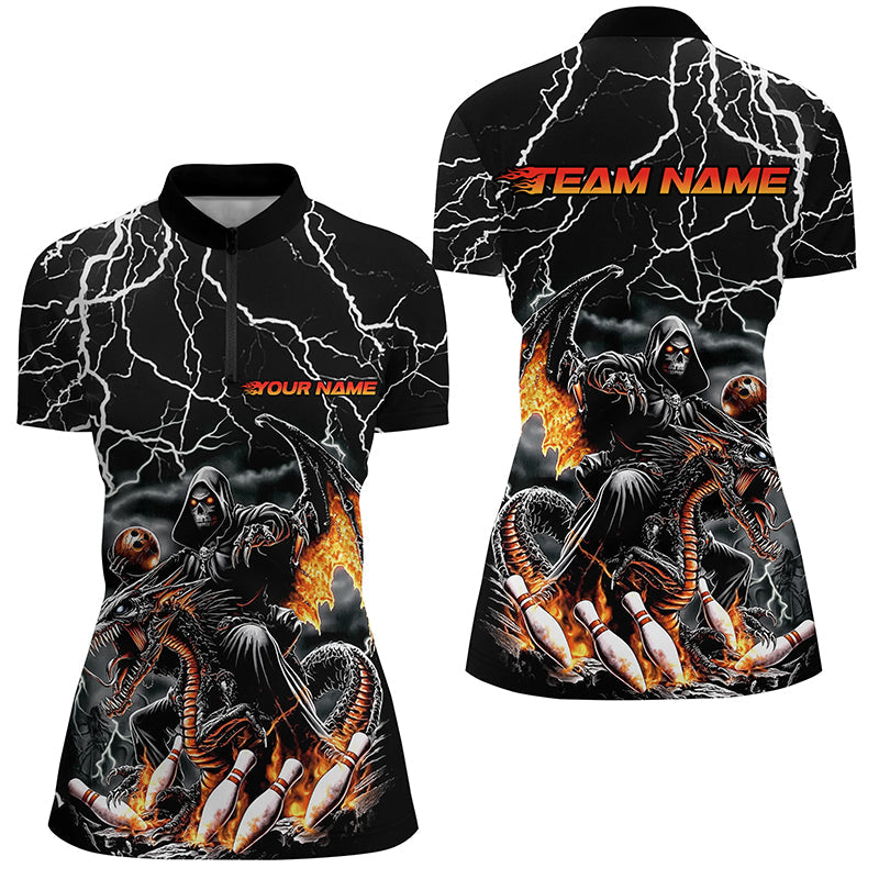 Black Thunder Lightning Grim Reaper Riding Dragon Custom Ladies Bowling Shirts Outfits IPHW7654