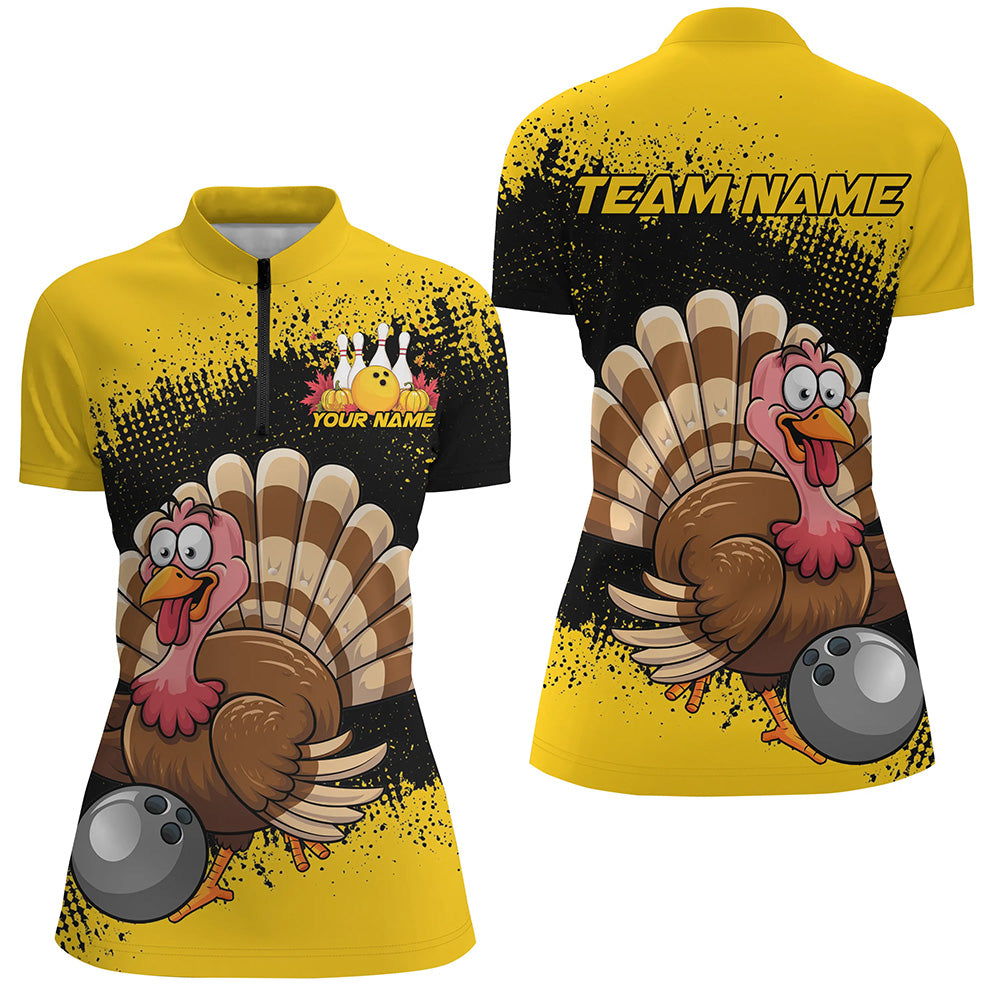 Black And Yellow Custom Funny Turkey Bowling Shirts For Women, Thanksgiving Bowling Uniform IPHW7870