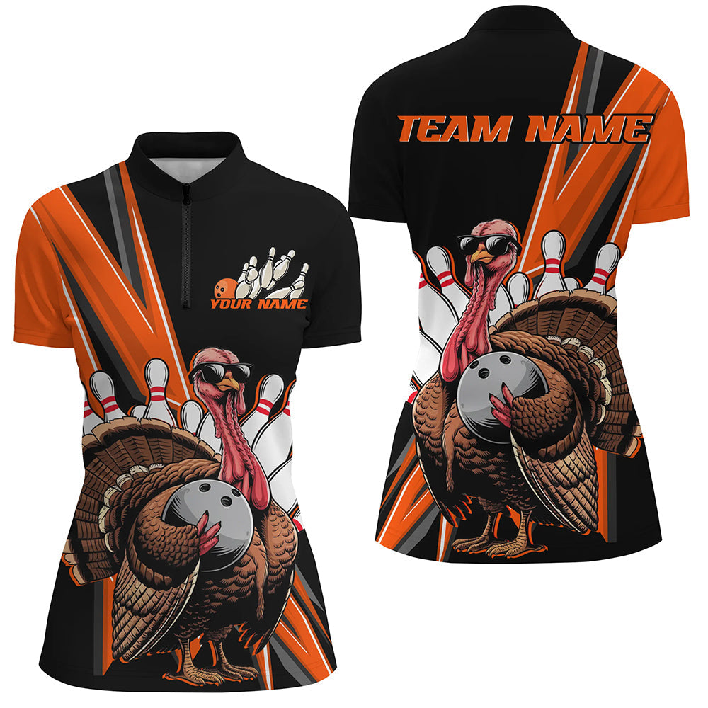 Black And Orange Custom Awesome Turkey Ladies Bowling Shirts, Thanksgiving Bowling Jerseys IPHW7879