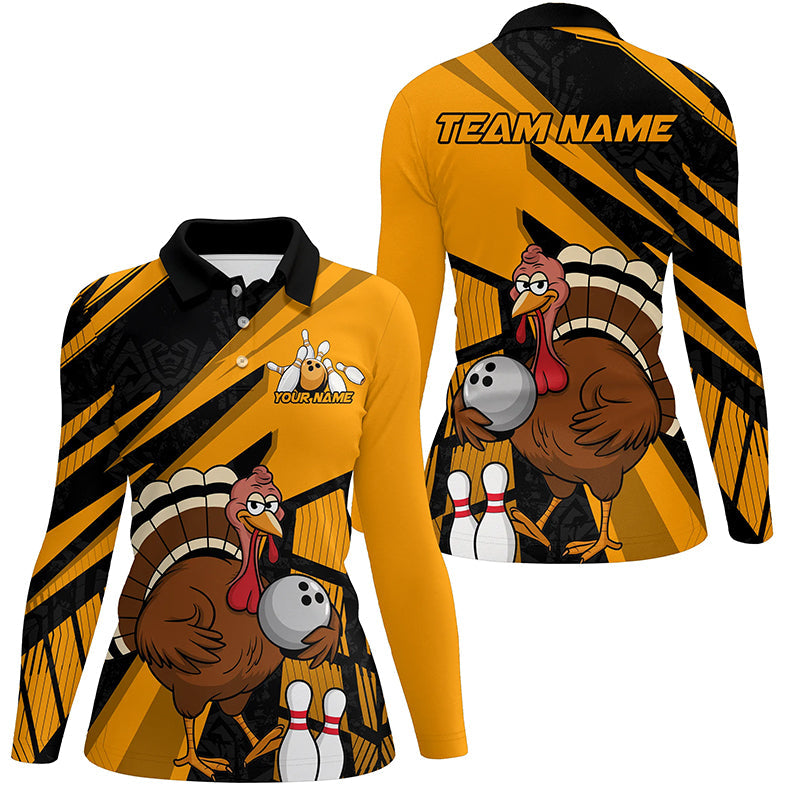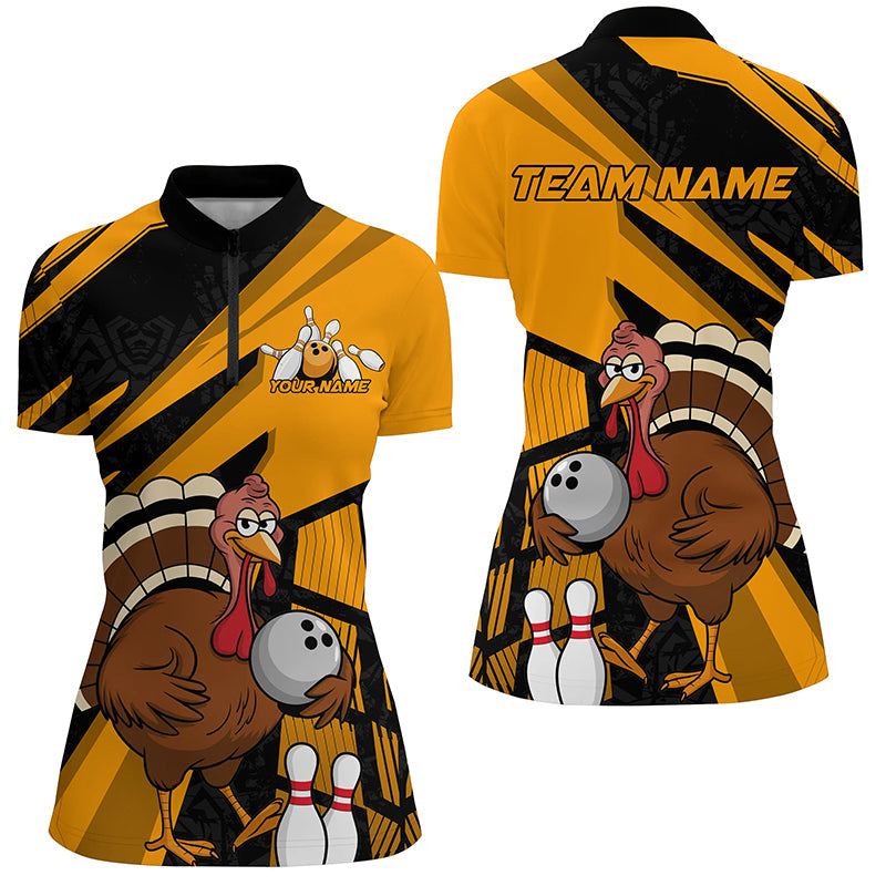 Custom Black And Yellow Turkey Bowling Shirts For Women, Thanksgiving Bowling Team Outfits IPHW7886