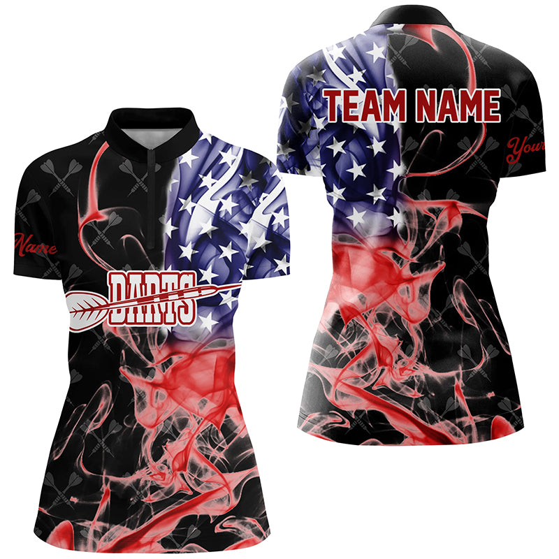 Customized Black Darts Pattern American Flag Smoke Women Darts Shirts Custom Patriotic Darts Jersey TDM1588