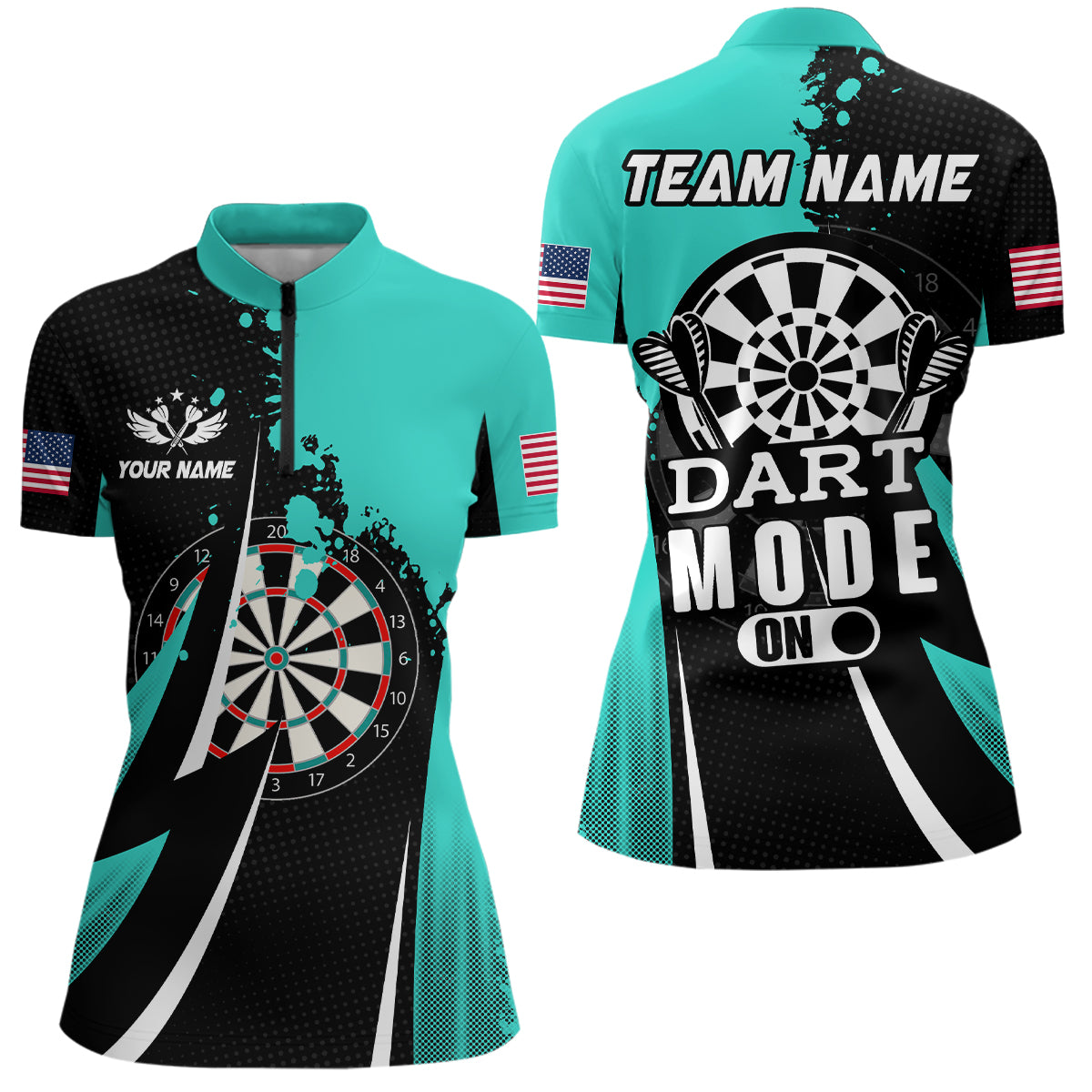 Personalized Turquoise Dart Mode On Women Polo & Quarter-Zip Shirt Custom Darts Jersey Team Shirts TDM1653