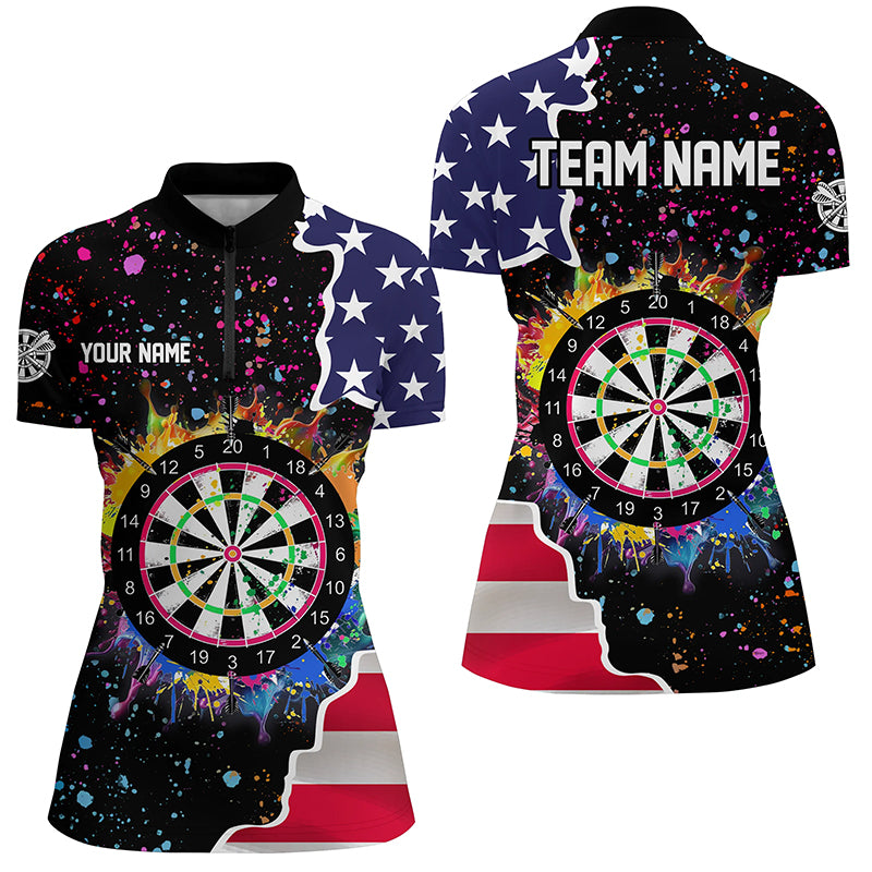 Grunge Colorful Darts Board US Flag Darts Shirts For Women Custom Patriotic Darts Team Jerseys TDM1681