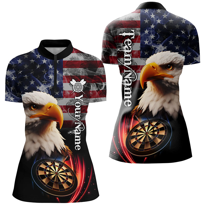Personalized Eagle Darts Board Smoke US Flag Women 3D Darts Shirts, Patriotic Darts Team Jerseys TDM1684