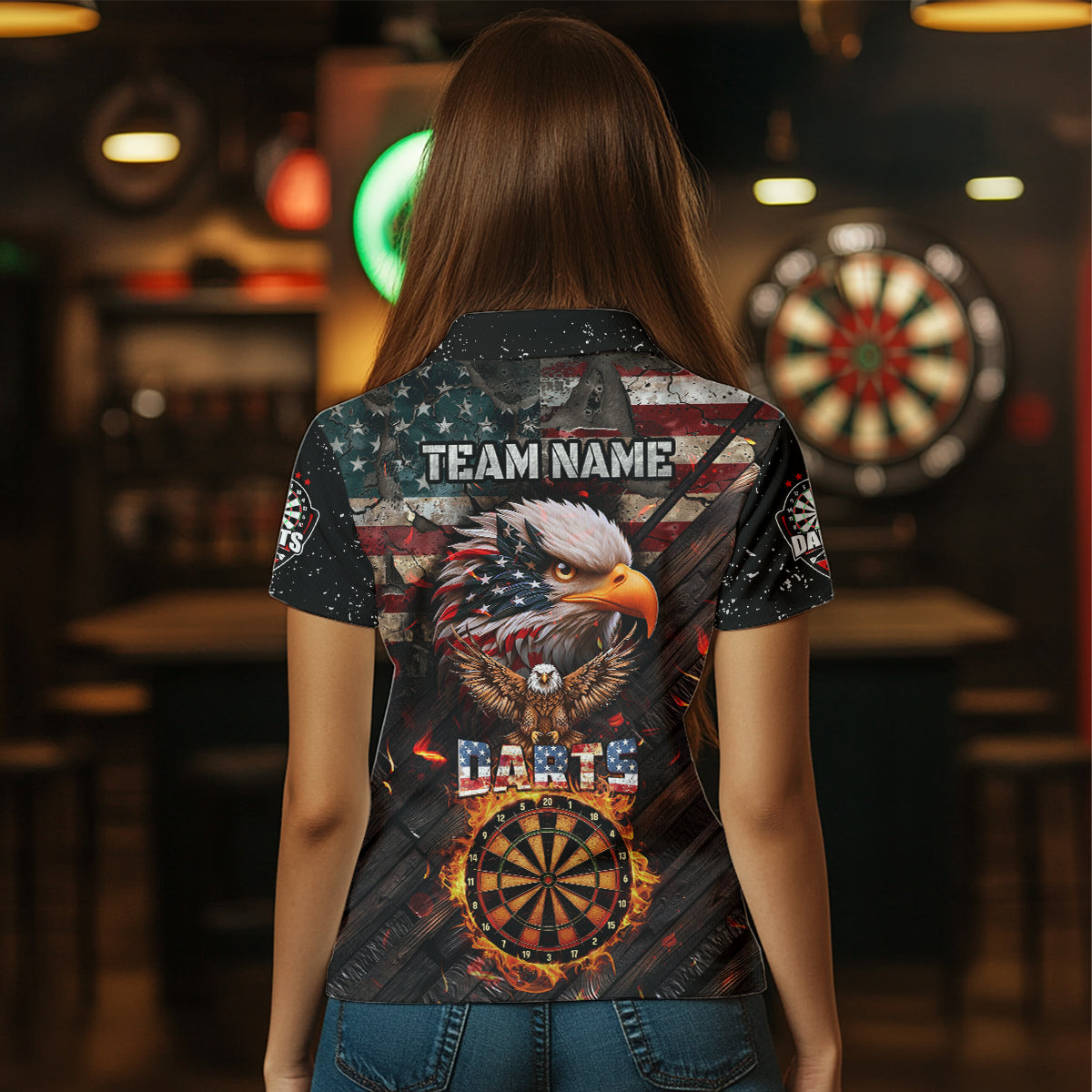 American Flag 3D Dartboard Fire Flame Custom Eagle Darts Shirt For Women, Patriotic Darts Team Jersey TDM1828