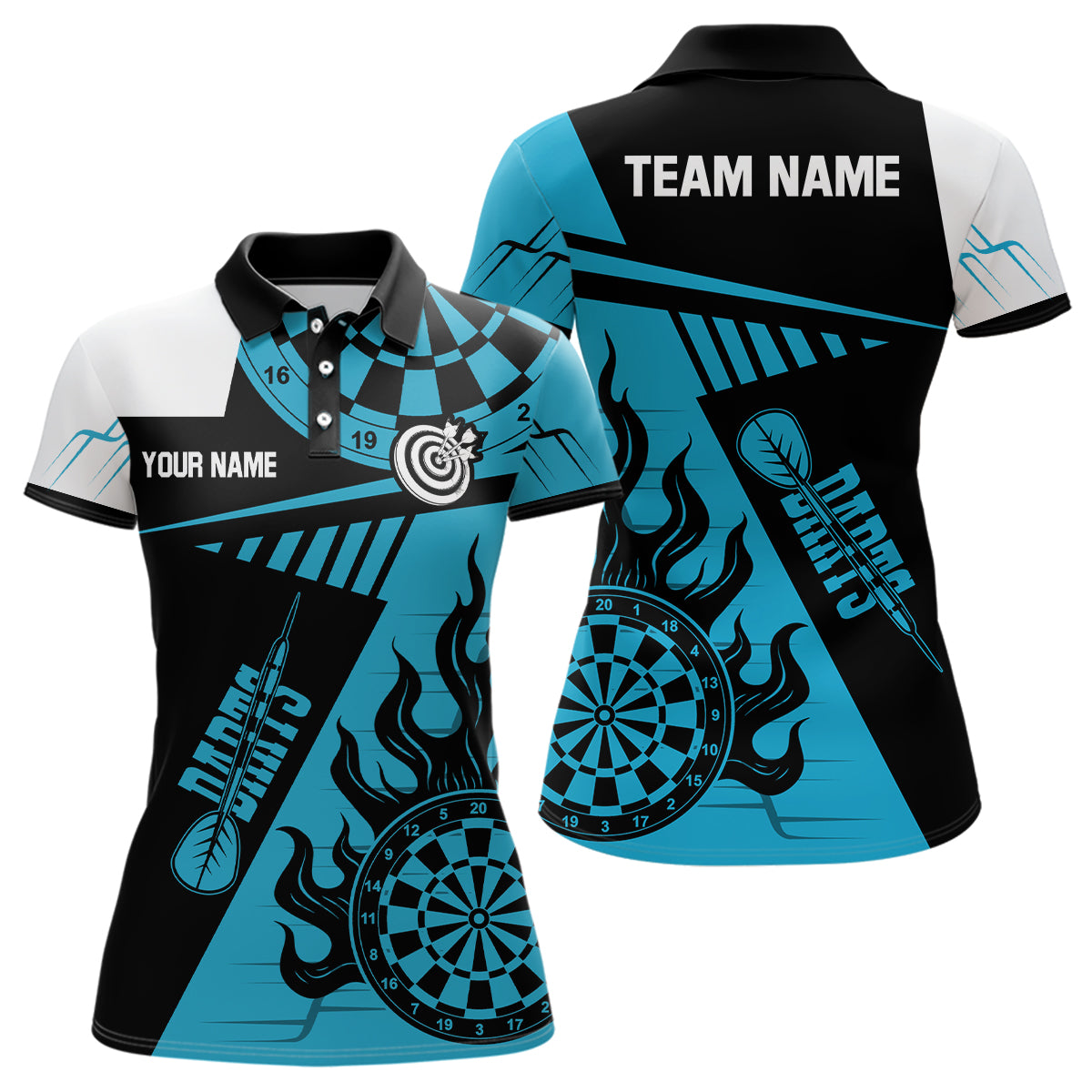 Customized Blue And Black Darts Polo & Quarter-Zip Shirts For Women, Best Darts Team Jerseys Apparel TDM1991