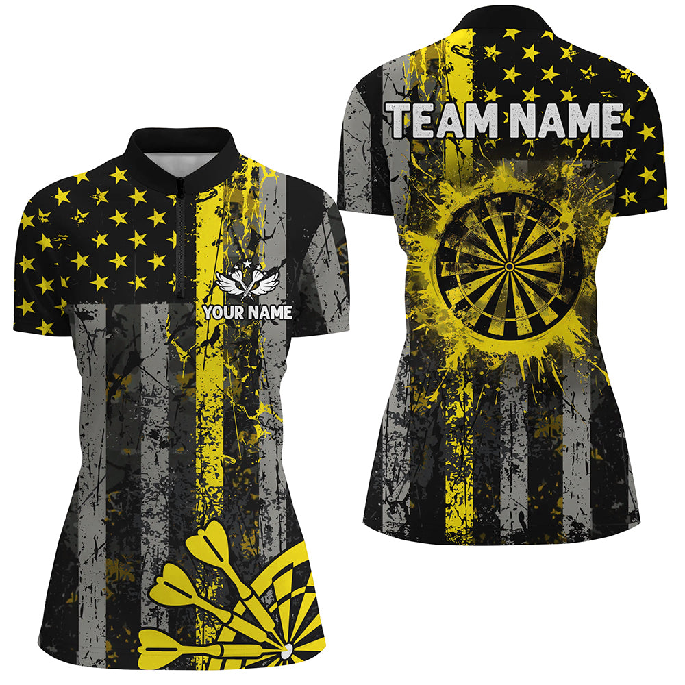 Custom Yellow Grunge US Flag Patriotic Darts Shirt For Women, Retro Darts Board Darts Team Jerseys TDM2069
