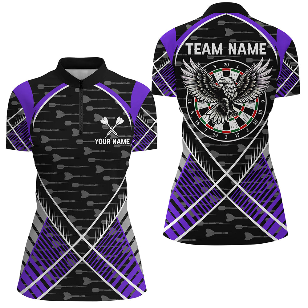 Darts Eagle Arrow Pattern Custom Polo & Quarter-Zip Shirts For Women Best Darts Team Jerseys |Purple TDM2205