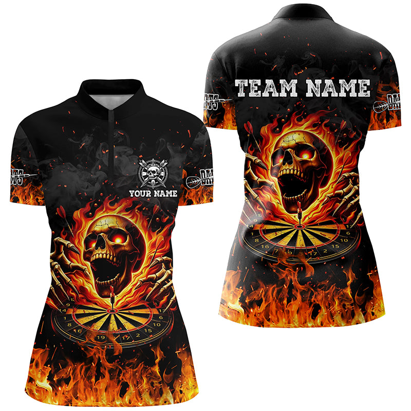 3D Fire Skull Flame Dartboard Short Sleeves Polo & Quarter-Zip Shirts Custom Darts Shirts For Women TDM2280