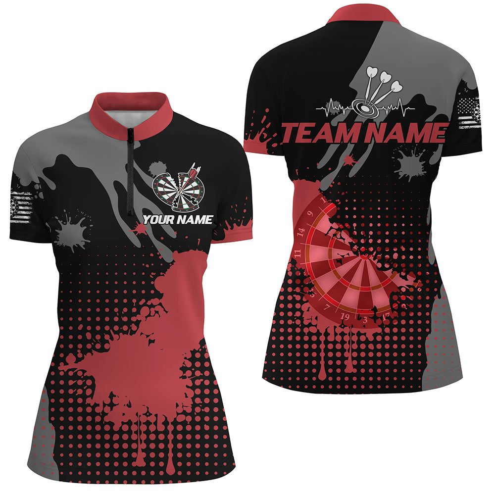 Personalized Grunge Paint Darts Polo & 1/4 Zip Shirts For Women, Best Darts Shirts Team Jersey |Red TDM2386