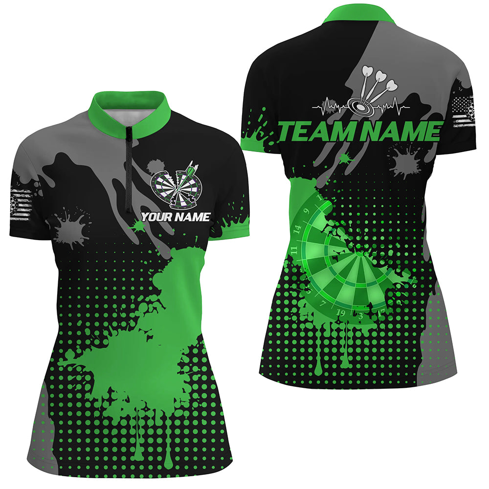 Personalized Grunge Paint Darts Polo & 1/4 Zip Shirts For Women, Best Darts Shirts Team Jersey |Green TDM2387