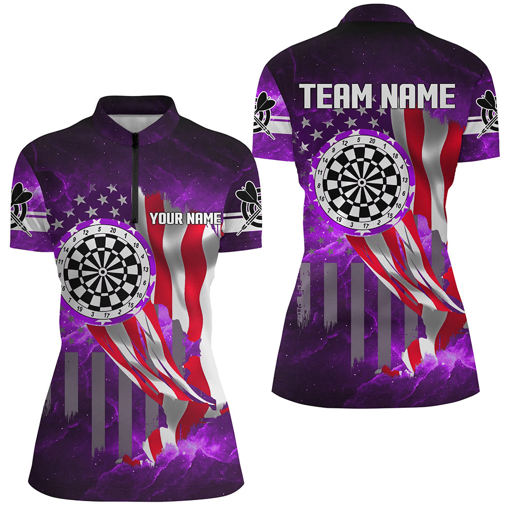 US Flag Dartboard Purple Galaxy Women Polo & Quarter-Zip Shirts Custom Patriotic Darts League Jerseys TDM2558