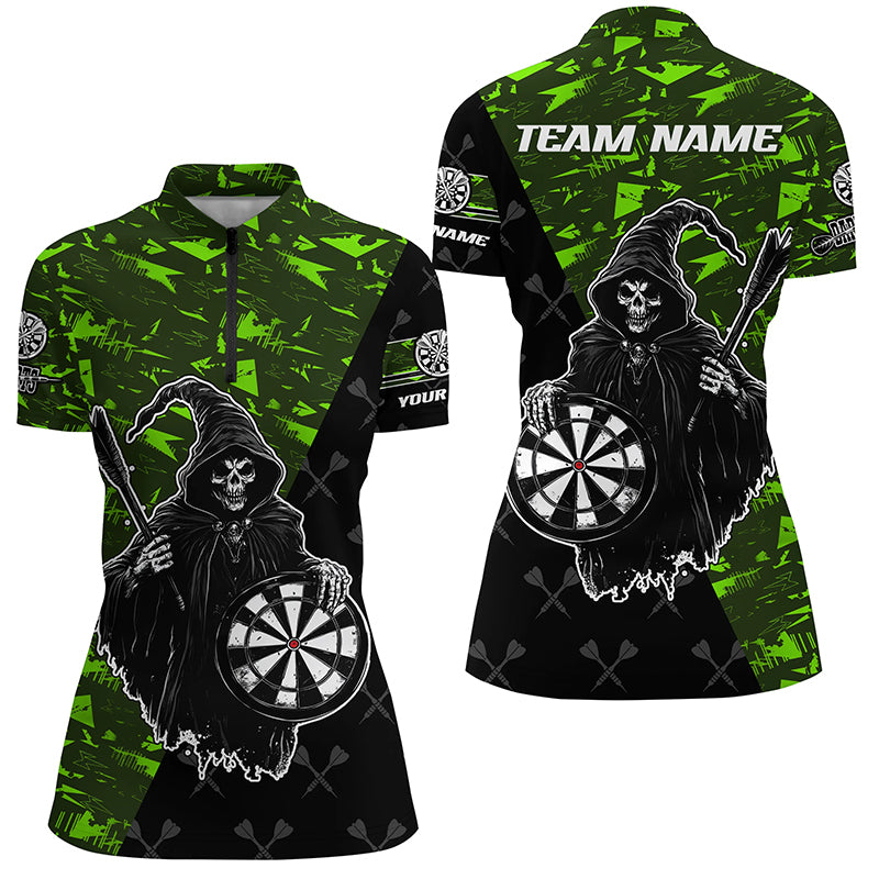 Personalized Green Abstract Death Skeleton Women Darts Shirts, Funny Halloween Scary Darts Jerseys TDM2607