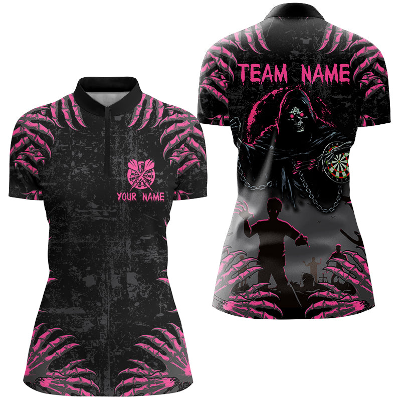 Funny Claw Death Skeleton Women Darts Shirts Custom Grunge Pink Black Scary Halloween Darts Jerseys TDM2697