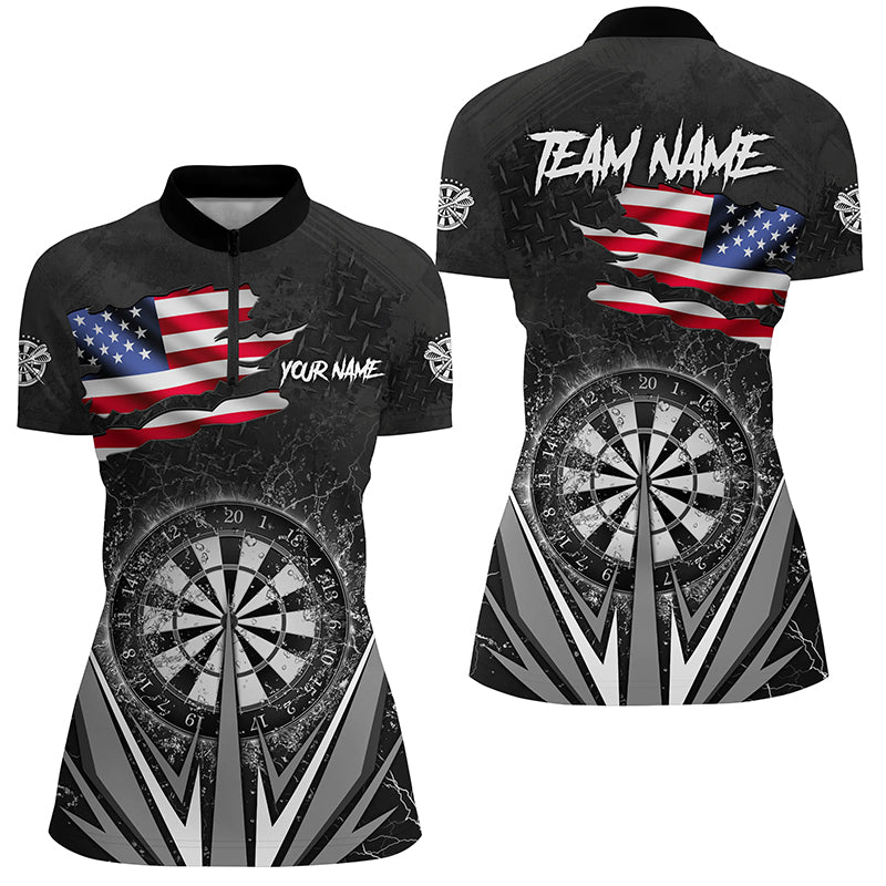 American Flag Darts Polo & Quarter-Zip Shirts For Women Custom Patriotic Black Darts Team Jerseys TDM2731