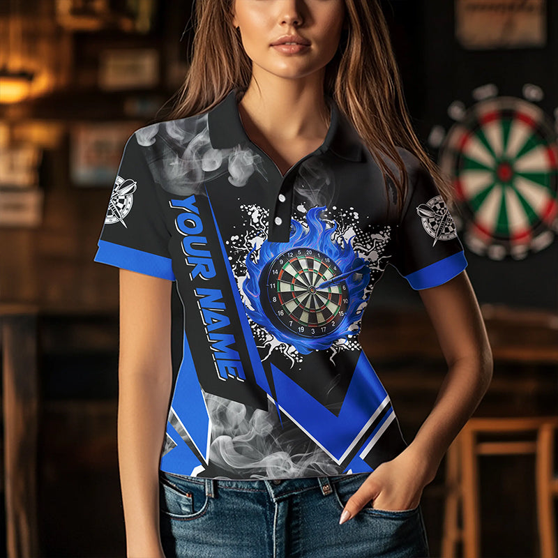 Personalized Dartboard Fire Flame Smoke Custom Dart Shirts For Women, Darts Team Jerseys | Blue TDM2811
