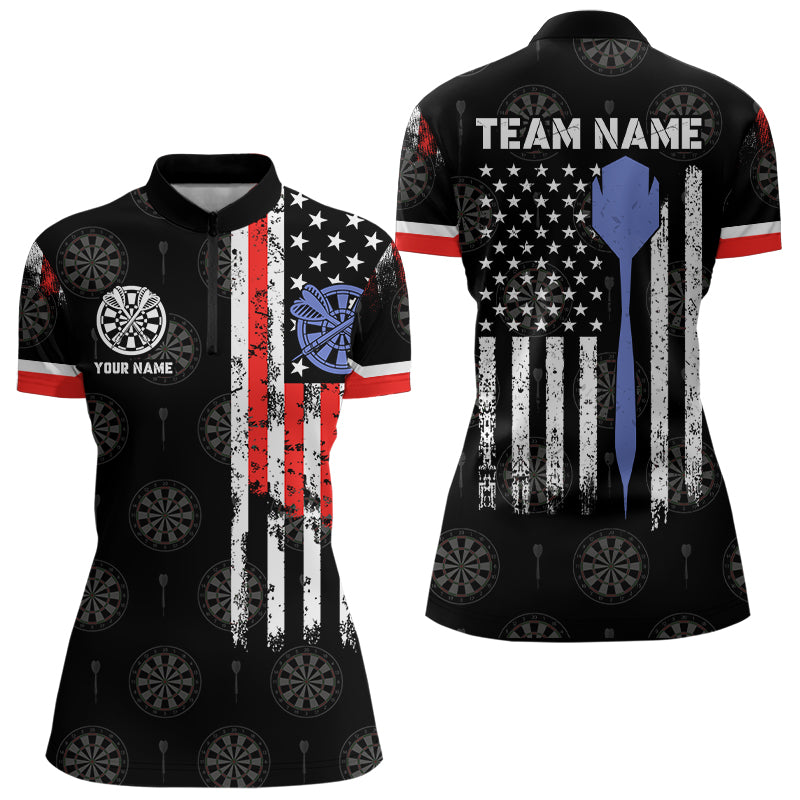 Personalized American Flag Dart Polo & Quarter Zip Shirt For Women Custom Patriotic Dart Jerseys TDM3083