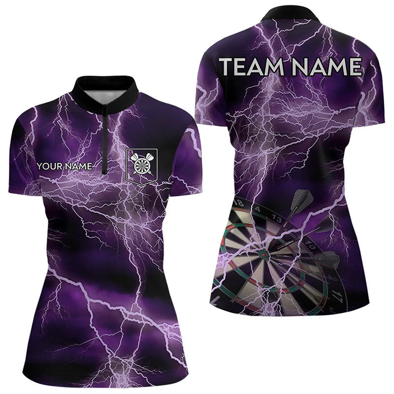 Thunder Lightning Purple Darts Shirt With Pocket For Women Custom Dart Jersey TDM3315