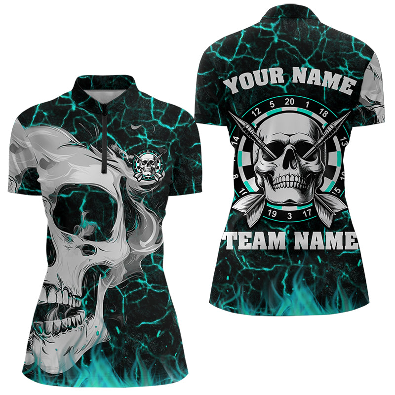 Personalized Turquoise Glowing Crack Skull Dart Shirts Custom Scary Dart Shirts For Women Dart Jersey TDM3416
