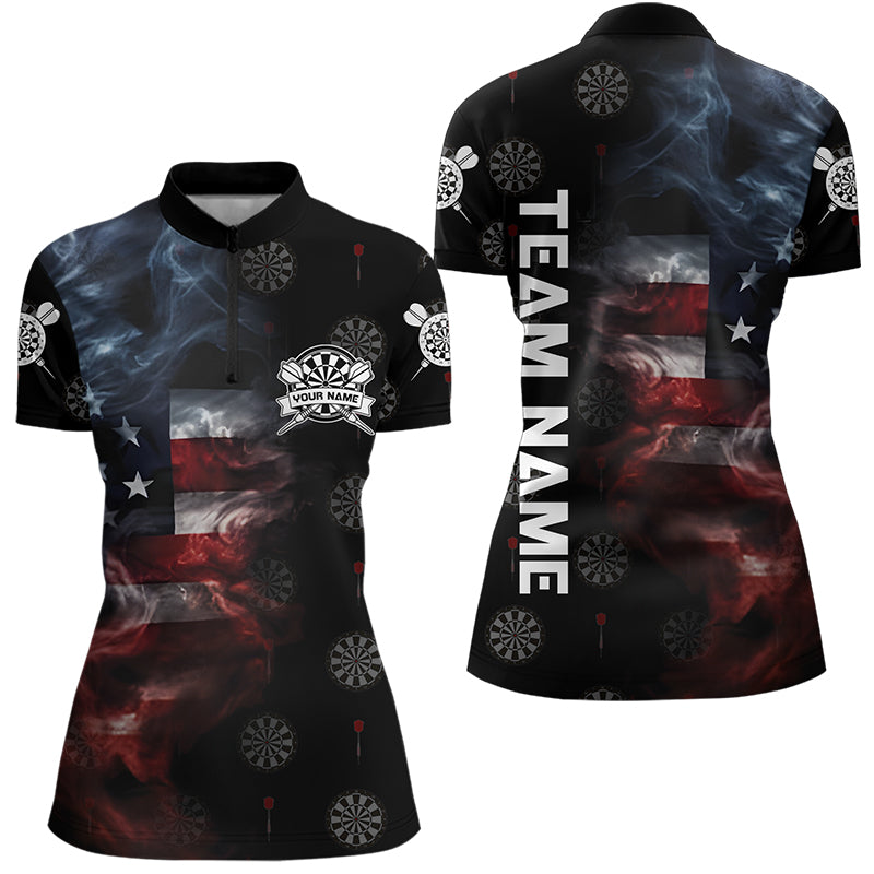 Smoke American Flag Darts Polo, Quarter-Zip Shirt Custom Patriotic Dart Shirts For Women Dart Jerseys TDM3454