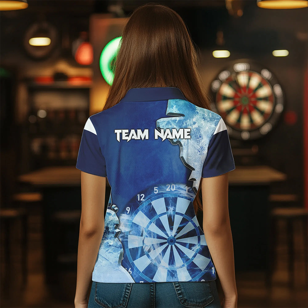 Blue Icy Light Darts Polo & Quarter Zip Custom Dart Shirts For Women, Cool Darts Team Jerseys TDM3462