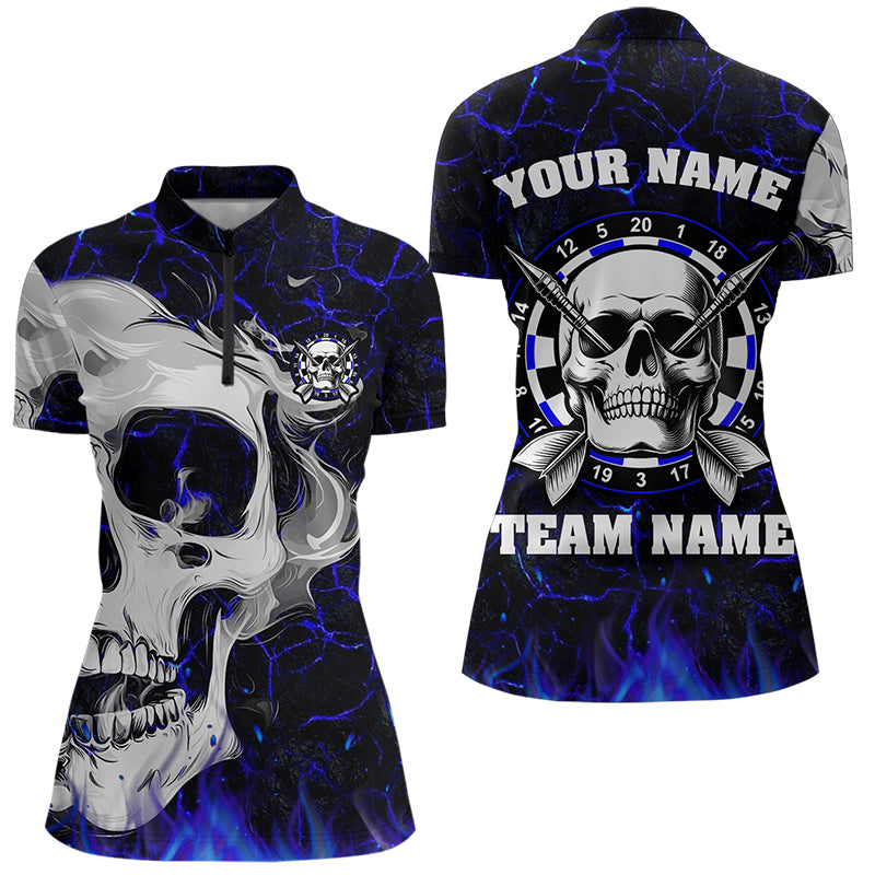 Personalized Blue Glowing Fire Crack Skull Dart Shirt Custom Dart Shirts For Women Dart Team Jersey TDM3492